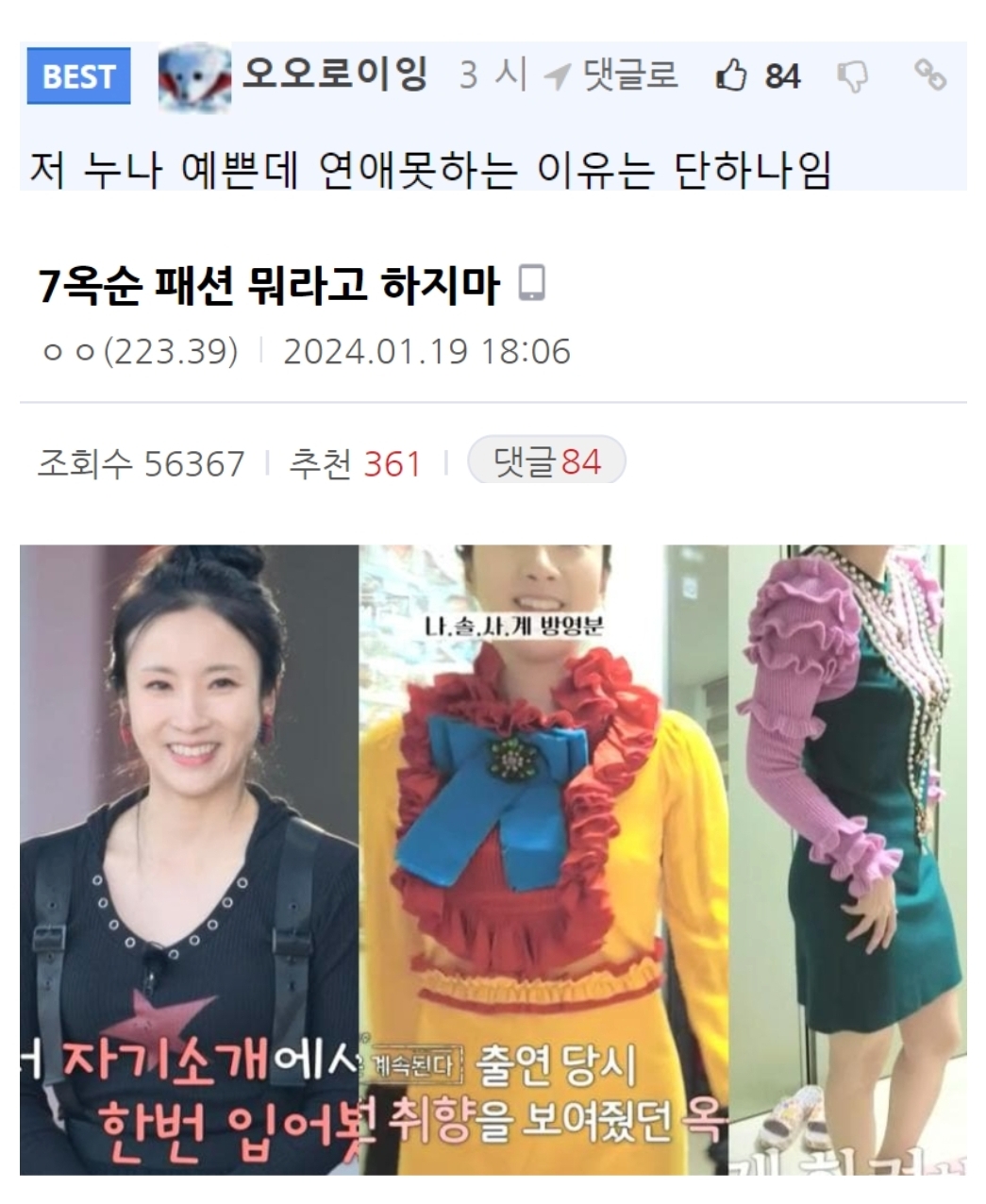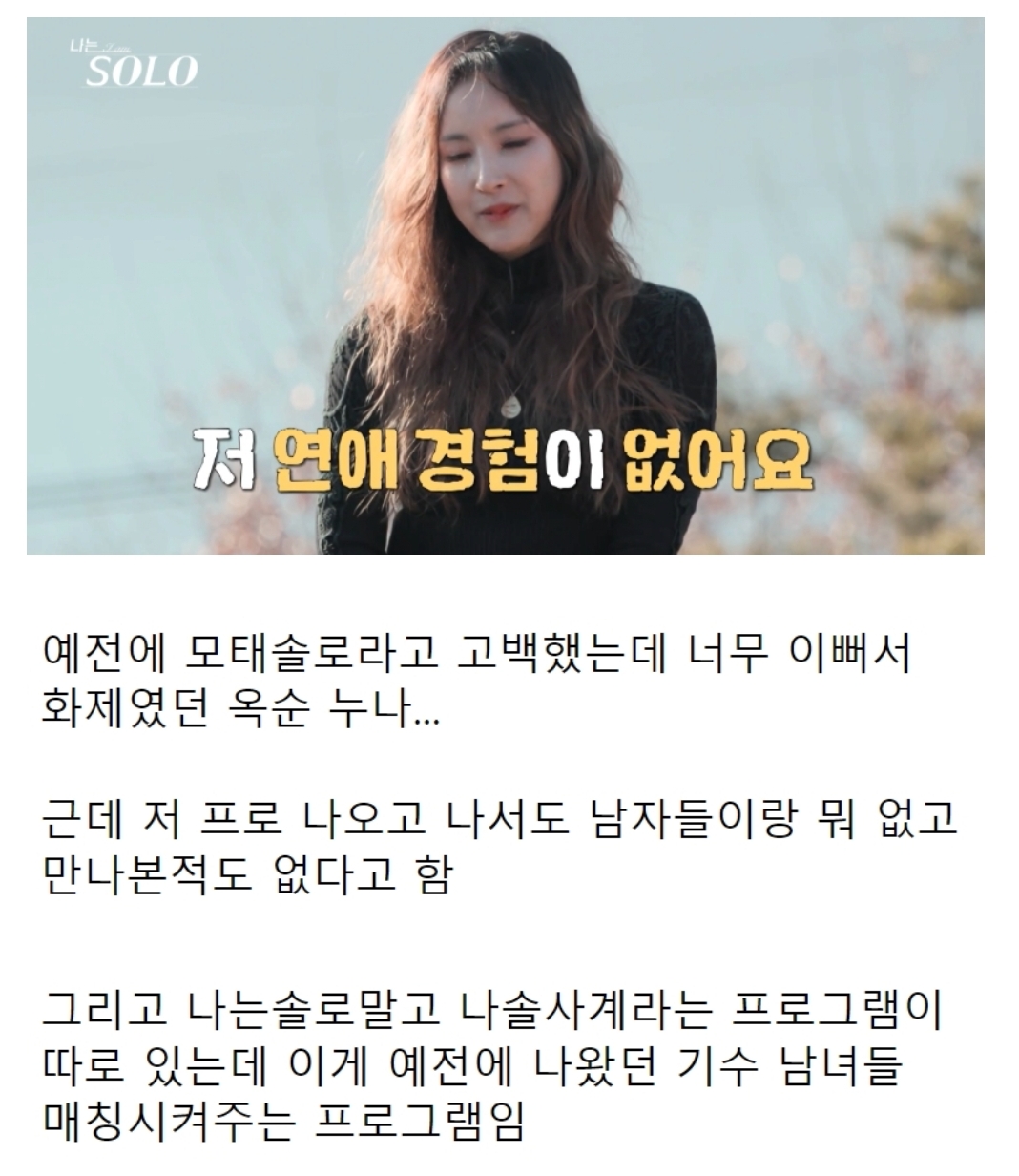 나는솔로에서 모솔인데 이쁜거로 유명했던 옥순 왜 모쏠인가 봤는데 평소 복장이...