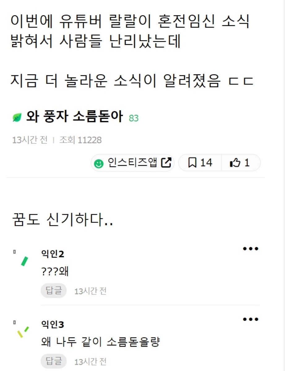 오늘자 랄랄 임ㅅ했는데 풍자 신기 있는거 아니냐고 난리남