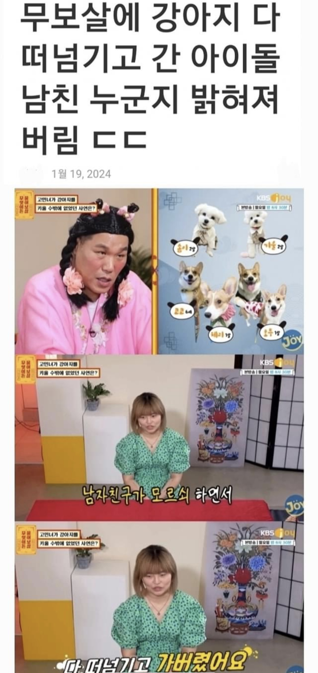 물어보살에 강ㅇ지 다 떠넘기고 간 아이돌 남친 누군지 밝혀져버림(+인스타)