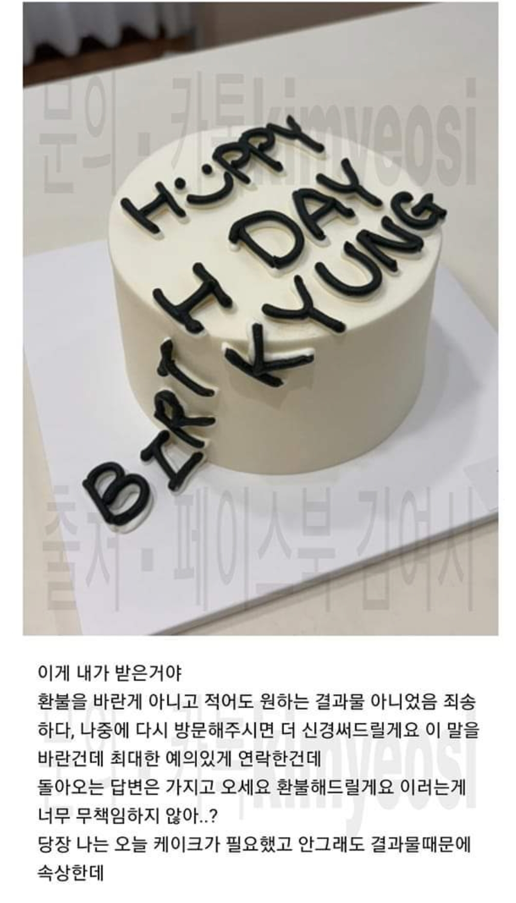 레터링 케이크 가게 답변 너무 무책임하지않아?