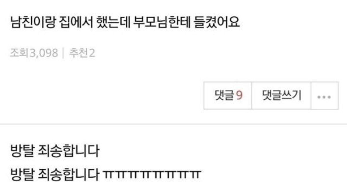 남친이랑 했는데 부모님께 걸림