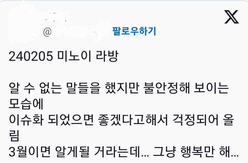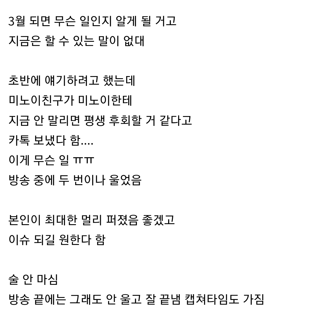 미노이 라방에서 오열하며 자기 모습 기억해달라고 함